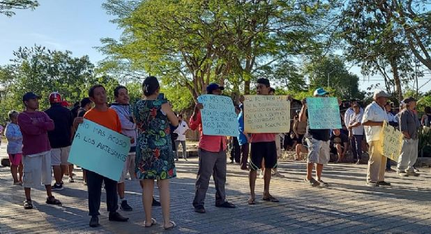 Una de las mujeres que protestó lanzó un mensaje al gobierno estatal y federal. Advirtió que el pueblo maya no abandonará la zona para beneficio de empresarios extractivitas.