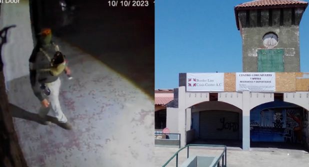 En un video de seguridad compartido por la asociación se observa a al menos a seis hombres afuera del lugar y a un agente de migración con el rostro cubierto tratando de levantar la cortina de metal que da acceso al albergue.