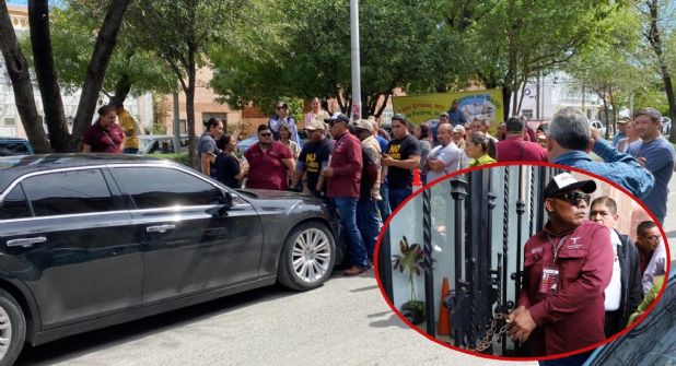 Desde ayer iniciaron las protestas de los trabajadores eventuales las cuales continuaron esta mañana, colocando cadenas y candado en la entrada principal. Pero por una puerta lateral sí permitía el acceso.