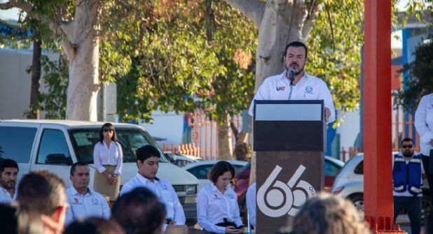 Durante el acto de honores a los símbolos patrios efectuado este 2 de octubre en la plazoleta cívica del Centro Universitario de Victoria, el rector Guillermo Mendoza invitó a los asistentes guardar un minuto de silencio como muestra de respeto y solidaridad con las familias.
