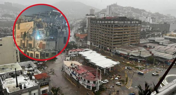 Y es que en la imagen que rápidamente se hizo viral se puede ver cono debido a la fuerza del huracán Otis parte de la estructura de esta plaza colapso dejando solamente escombros, imagen que advirtió de los desastres que dejó el huracán tras su paso.
