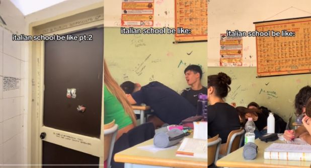 Pupitres en mal estado, paredes pintadas con plumines, estudiantes con sueño, baños en mal estado y más son mostrados en videos que se han hechos virales por una estudiante italiana, lo que más ha hecho que se hagan famosos son los divertidos comentarios, en algunos se pueden leer: