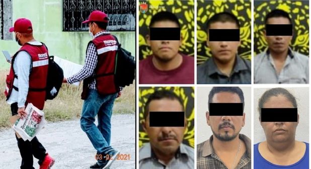TUXTLA GUTIÉRREZ.- Agentes de la Fiscalía de Chiapas detuvieron a seis personas, presuntamente implicados en el secuestro de tres encuestadores de Morena, dos de los cuales fueron localizados muertos y otro sigue desaparecido. Los tres fueron sustraídos por la fuerza del interior de un hotel del municipio de Juárez, Chiapas.