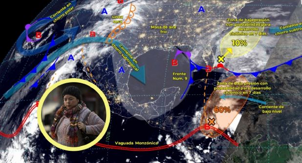 En tanto, el SMN destacó que la inestabilidad en los niveles altos de la atmósfera en conjunto con la corriente en chorro subtropical ocasionará rachas fuertes de viento, chubascos y lluvias muy fuertes en la Península de Baja California y Sonora. Además, el ingreso de humedad del Océano Pacífico, Golfo de México y el Mar Caribe provocará lluvias y chubascos en zonas del occidente, sur, oriente y sureste de México, además de la Península de Yucatán.