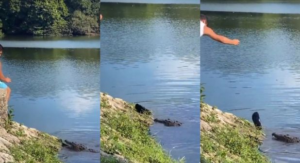 VILLAHERMOSA. - A través de redes sociales se ha difundido un video de un joven que se encuentra en la Laguna de las Ilusiones, en Tabasco, tratando de llamar la atención de un cocodrilo usando su chancla como señuelo; las poco usuales imágenes han dado la vuelta a las redes sociales y han derivado en duras críticas contra los responsables, pues estuvieron molestando a un animal que nada les hacía.