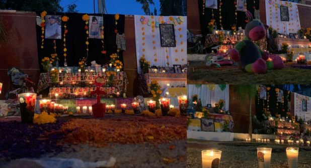 Las lágrimas brotan de algunas madres y padres de familia e incluso de adolescentes y niños, al ver la fotografía en uno de los altares de Daleyni Jaqueline Colmenero Lozano; la pequeña tenía 3 años de edad y fue asesinada a tiros junto con su abuelito y un joven de 21 años de edad, el pasado 8 de octubre, por una célula del CJNG.