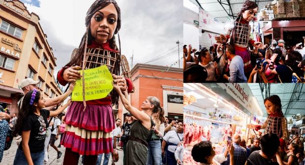 OAXACA. - El mensaje de hermandad con la comunidad migrante y desplazada, llegó a Oaxaca a través de Amal, una niña siria de 10 años de edad que busca a sus padres. La marioneta de 3.6 metros llegó este miércoles a la entidad. Durante su primer día de estancia estuvo en Monte Albán, recorrió los mercados tradicionales del Centro Histórico y sus calles, asimismo estuvo en Santa María El Tule, en donde habita el milenario árbol ahuehuete.