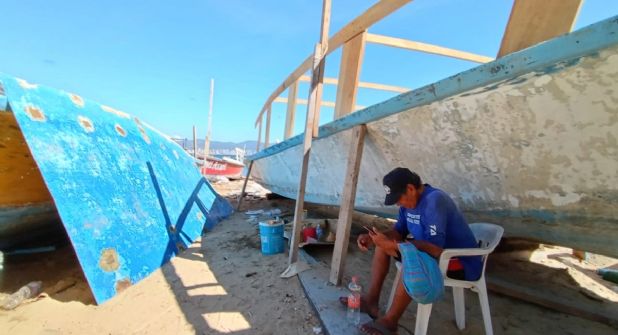 Don Roberto y sus compañeros rescatan y reparan lanchas en Playa Manzanillo, ubicada muy cerca de La Quebrada, porque la fuerza de Otis lanzó sus lanchas a ese lugar, pero su zona de trabajo está a kilómetros de distancia, a las afueras del Hotel Elcano.