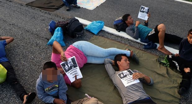 Luego de cuatro horas de bloqueo carretero, un grupo de migrantes e Irineo Mujica Arzate, de la organización Pueblos Sin Frontera, dialogaron con funcionarios de Migración de Huixtla.