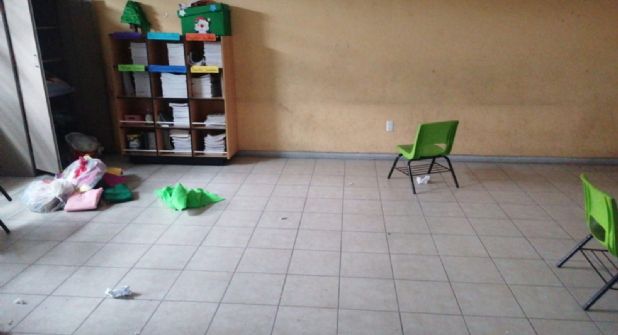 Se trata de la escuela primaria Valentín Gómez Farías, ubicada en la colonia Rubén Jaramillo, y este lunes al llegar encontraron vacío el salón de cuarto de primaria.