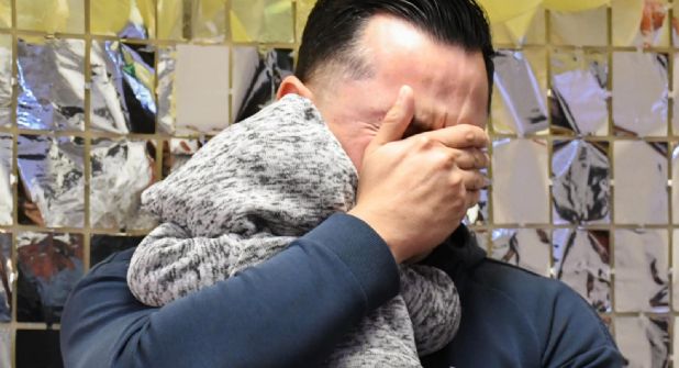 En las imágenes se puede ver la alegría del padre, quien soltó lágrimas al tener a su hijo en brazos.