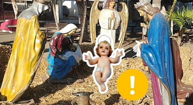 SINALOA. - Feligreses en redes sociales estuvieron indignados, luego de que se diera a conocer que, en el parque del Santuario de Nuestra Señora del Rosario, en la ciudad de Guasave, la figura del “Niño Dios” fue robada del pesebre que se encontraba en el nacimiento instalado previo a la navidad. La noticia fue dada a conocer este 26 de diciembre y se especula que durante la noche de Navidad fue robado, aprovechando la calma del día.