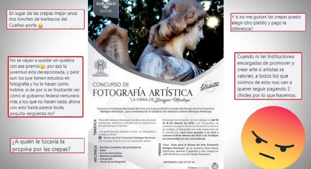 Sin embargo, ellos ni siquiera llegaron a las crepas, solo prometieron una exposición y un diploma de reconocimiento. Esto hizo enfurecer a gran parte del gremio artístico quienes compartieron su inconformidad en redes sociales y también criticaron que ni un solo centavo les darían a los ganadores. Los artistas respondieron con memes y esto se hizo viral.