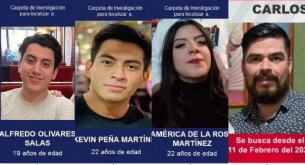 Se trata de los jóvenes Kevin Peña, América de la Rosa, Alfredo Olivares y Carlos Oziel, los cuatro viajaban en un automóvil tras salir de un centro nocturno. Mientras que la Comisión Estatal de Búsqueda de Personas emitió la cédula para dar con el paradero de Carlos Oziel, quien, apunta, desapareció el 11 de febrero.