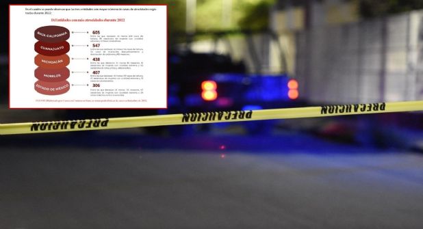 - La lista la lidera Baja California, con 605; en los cuales 220 fueron casos de tortura, 89 fueron asesinatos a mujeres con crueldad extrema y 31 con fosas clandestinas.