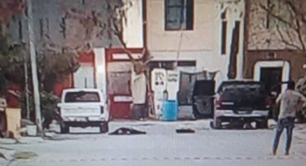 Imágenes que los vecinos entregaron a los policías, muestran a dos personas tiradas, uno en la calle y otro más en la banqueta, a orillas de una camioneta en color negro.