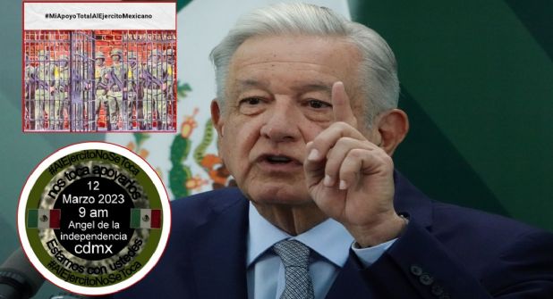 “Quiero aprovechar para decir también de que están convocando en redes sociales a una marcha en Tamaulipas, en Nuevo Laredo y otros sitios en donde supuestamente ciudadanos se van a manifestar en favor del Ejército (...) Aprovecho para informar de que esa marcha que están convocando tiene propósitos nada justos, sanos, que supuestamente es para defender al Ejército, no, y que nadie se deje engañar, eso puede estar inclusive promovido por la misma delincuencia”, expresó el mandatario.