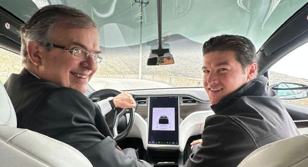 "Estamos manejando un Tesla, vamos a recorrer lo que va a ser la planta", dijo el Canciller en un video difundido por el gobernador, donde se ve a Ebrard al volante.