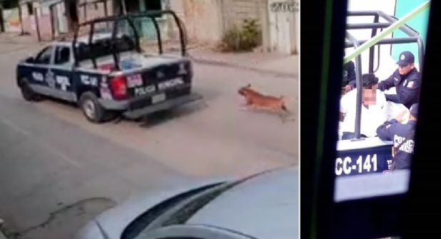 TUXTLA GUTIÉRREZ.- Policías municipales de esta ciudad capital de Chiapas fueron evidenciados cuando arrastraban a un perro en calles de la colonia Patria Nueva. De acuerdo con un video de una cámara de vigilancia de esa zona, los uniformados, quienes viajaban en la patrulla con matrícula PCC-141, ataron al canino en la parte trasera de esta unidad y se arrancaron.