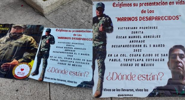 Ante la nula acción de la Secretaria de Marina (Semar) familiares de los marinos marcharon desde la Torre del Caballito rumbo al a Palacio Nacional, allí colocaron mantas con fotos de los marinos y texto donde le hicieron un llamado al presidente Andrés Manuel López Obrador y al almirante, Rafael Ojeda Durán para que dieran una respuesta del caso.