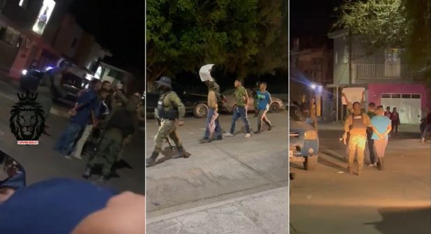 En diversos videos se observa a miembros del CJNG -vestidos con uniformes de camuflaje y con la leyenda del Cártel Jalisco Nueva Generación- escoltar a los sujetos detenidos y obligarlos a caminar por las calles semi-desnudos y gritando “¡esto me pasó por rata!”.