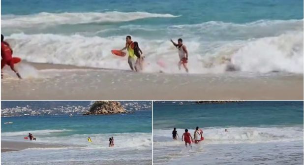 Por medio de la cuenta Promotora de Playas Acapulco se compartió un video el día de ayer en donde se les puede ver a por lo menos 3 salvavidas ayudando a dos jóvenes de 18 y 13 años que se encontraban en la playa, eran provenientes de la Ciudad de México y la fuerte corriente del mar estaba a punto de ahogarlos.