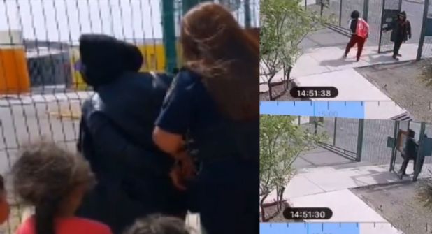La madre trata de continuar su camino a paso rápido, voltea e intercambia algunas palabras con la mujer de chamarra, la mamá continua su camino y la señora emprende carrera para arrebatarle de nuevo al bebé, en ese momento desaparecen del cuadro de video, segundos más tarde se ve que sale una vecina y corre aparentemente para ayudar, detrás de ella sale otro hombre que también corre.