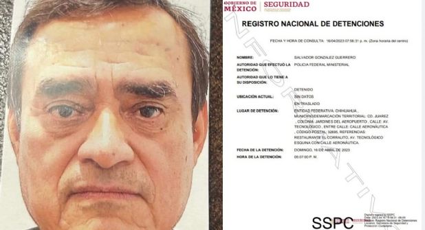 El contralmirante Salvador González Guerrero, delegado del Instituto Nacional de Migración (INM) en Chihuahua, fue detenido por la Fiscalía General de la República (FGR). Es señalado por el Ministerio Público Federal de estar relacionado directamente con el incendio en la estación migratoria de Ciudad Juárez, Chihuahua. La captura ocurrió en la colonia Jardines del Aeropuerto, en Ciudad Juárez, en calle avenida Tecnológico, en las inmediaciones del restaurante El Corralito.