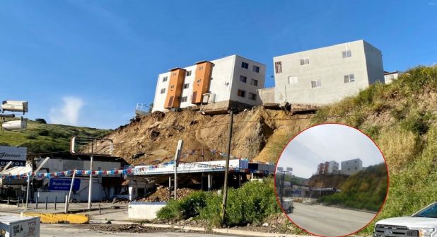 Otra de las vías a los municipios playeros desde Tijuana es el bulevar Cuauhtémoc que está cerrado desde este jueves por la noche a causa del inminente colapso de 12 viviendas divididas en dos edificios construidos en lo alto de un cerro que se está desmoronando aceleradamente desde hace una semana.