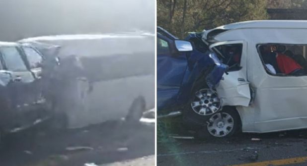 De acuerdo a los reportes, se trata de una camioneta Pickup azul y una Urvan de pasajeros que chocaron de manera frontal lo que provocó que ambas quedaran destrozadas.