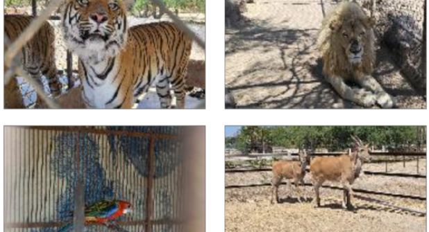 En el sitio se aseguraron dos antílopes, una llama, 10 tigres, tres de ellos cachorros; seis jaguares, cinco leones, dos ciervos rojos, dos águilas Harris, un ave emú, tres aves caracara, un cuervo, dos pelícanos, tres zopilotes, nueve pericos dorsirrojo, un cacomixtle, cuatro loros kramer, dos pericos multicolor y dos mapaches.