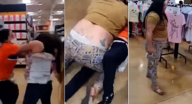En otro momento se observa que una empleada del supermercado sujeta el cabello a la fardera que aventó la taza y comienza una breve pelea que las lleva al piso. La otra mujer, ya libre del guardia de seguridad, comienza a gritar: “Graba porque me está pegando”, al percatarse que su compañera está siendo agredida, pide que la dejen “porque está panzona (embarazada)”.