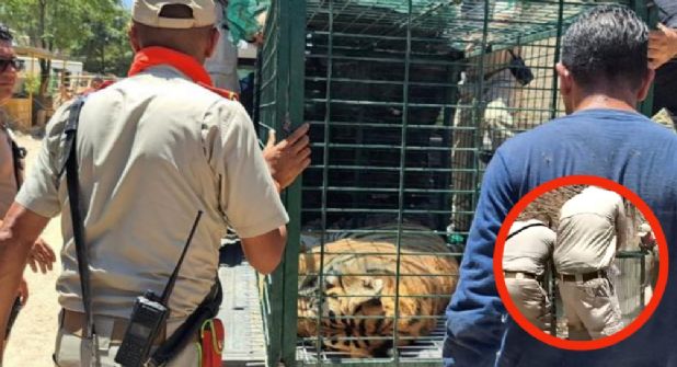 “Al llegar al lugar encontraron un tigre de una edad aproximada de año y medio, mismo se encontraba escondido sobre una escombrera, por las características del animal se solicitó el apoyo a la Dirección de Fauna Silvestre del municipio de Tlajomulco, quienes arribaron de inmediato y procedieron a sedar al animal para poderlo poner a resguardo en instalaciones seguras mientras se define su situación bajo la coordinación de la Profepa, en el lugar donde el animal se resguardaba fue visitado por personal de Inspección Ambiental de nuestro municipio y género una clausura”.