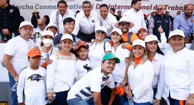 Previo a la ceremonia, el gobernador asistió a la Marcha Conmemorativa por el Día Internacional del Trabajo en el que participaron trabajadoras y trabajadores de diversos sectores.