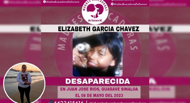 HERMOSILLO. – Ceci Patricia Flores Armenta, líder de las Madres Buscadoras de Sonora, pidió ayuda en sus redes sociales para encontrar a su sobrina Elizabeth García Chávez, quien fue vista por última vez el pasado 8 de mayo, cuando se encontraba predicando en una papelería en Juan José Ríos, Guasave estado de Sinaloa.