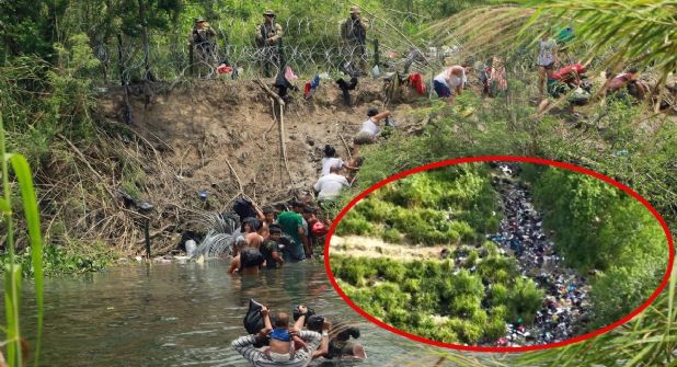 Un video que se hizo viral en las últimas horas presenta la grave situación que se vive en la frontera, a orillas del Río Bravo, este visual fue captado en vista aérea por un dron, en las imágenes se puede apreciar una gran cantidad de basura, objetos y, según internautas, documentos personales abandonados por los migrantes.