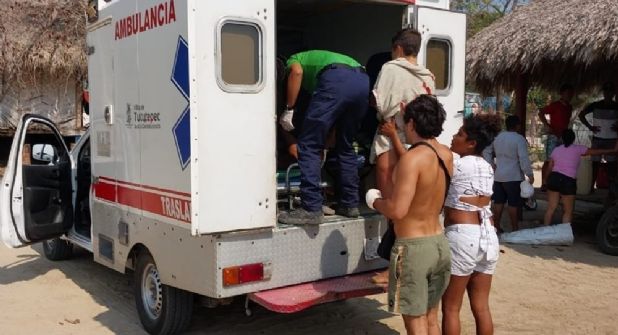 Paramédicos de San Pedro Mixtepec también acudieron al llamado de auxilio de vecinos de la localidad que hallaron el cuerpo sin vida del canadiense Víctor Masson.