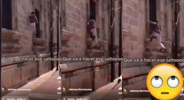El hombre voltea la cámara a todos los transeúntes, de inmediato enfoca al influencer y este salta para llegar a la otra repisa, sin embargo, todo sale muy mal, Montesana apoya un pie, pero resbala y fractura el edificio, él cae de manera impactante contra el piso mientras todos gritan.