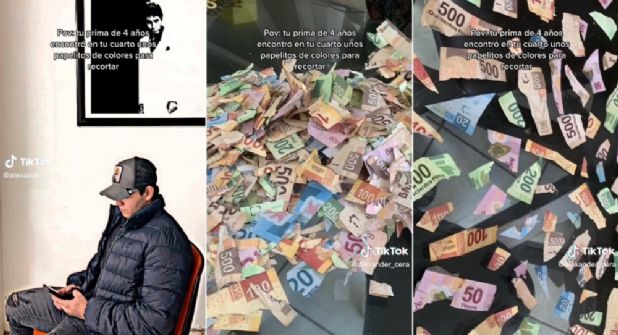Por medio de su cuenta de TikTok, Alexander Cera (@alexander_cera) subió un video corto en el que narra que su primita de 4 años confundió su dinero de los ahorros con papelitos de colores y los recortó.