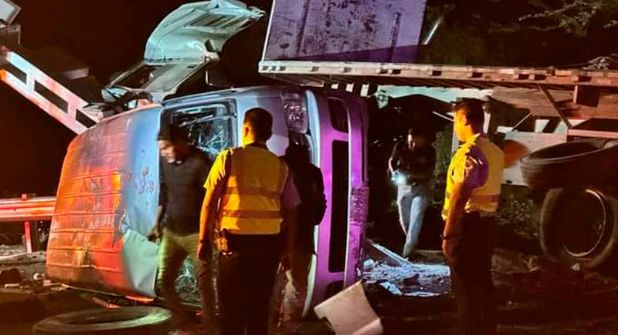 Según los primeros reportes, el tráiler se habría quedado sin frenos y se estampó contra la camioneta tipo Urvan, en la que viajaban los turistas arrastrándola al menos 100 metros.