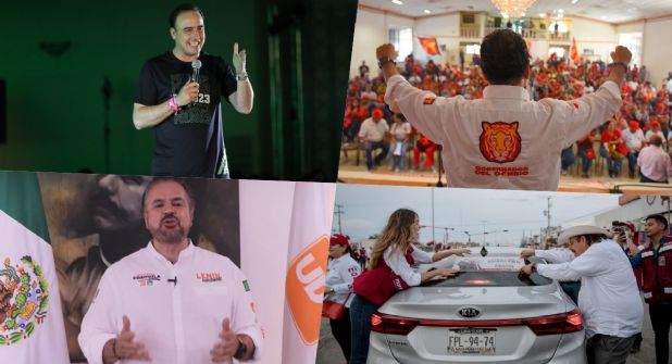 SALTILLO.- Los candidatos a la gubernatura de Coahuila continúan recorriendo el estado con el objetivo de obtener el voto de la ciudadanía, cabe destacar que estamos a 10 días de las elecciones, en las cuales van a elegir a 1 gobernador y 25 diputados locales de los cuales 16 son de mayoría relativa y 9 por representación proporcional.