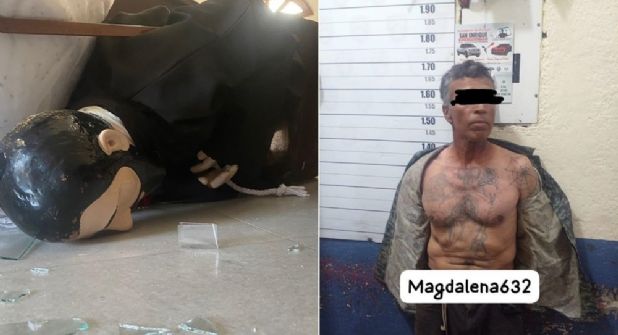 Uno de los cuidadores de la parroquia denunció el acto de vandalismo por parte de una persona “fuera de juicio”, poco después del mediodía de este miércoles 3 de mayo, derribando figuras e imágenes de santos. “Se ganó el infierno”.