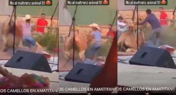 GUADALAJARA. – Por medio de redes sociales se comenzó a ser viral un video, donde fue captado el momento exacto donde tres personales golpean a un camello luego de otras intentaran montarlo para tener una foto; al camello se le logra ver estresado y que aplasta a una persona en reacción a los golpes que le propiciaban.