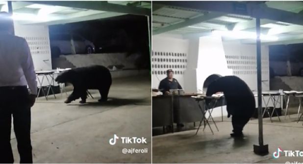 El usuario de TikTok @ajferoli compartió el momento cuando llega el oso a la celebración y sorprende a los invitados, en la grabación se puede observar como el animal camina por el lugar y después se dirige dónde estaba el área de comida y el personal que serviría la comida.