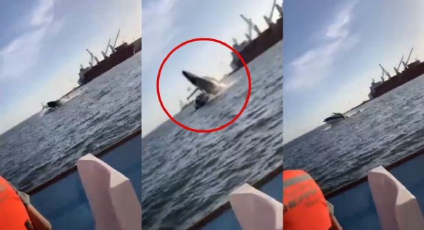 La embarcación que estaba muy cercano al hecho soltó expresiones de asombro pues el momento fue impactante.