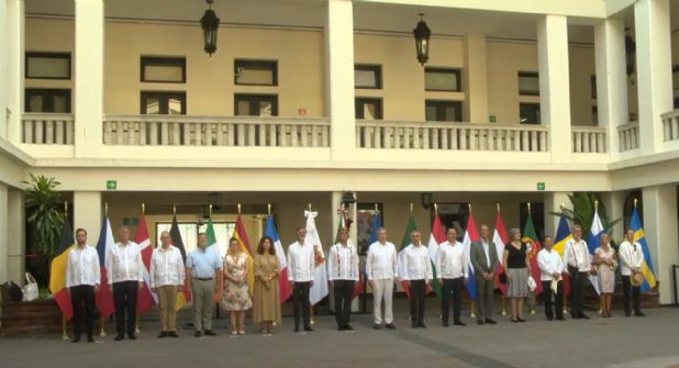 Ciudad Victoria, Tamaulipas - El gobernador de Tamaulipas, Américo Villarreal Anaya, sostuvo una reunión con los embajadores de la Unión Europea en México, así como con los representantes de Alemania, Austria, Bélgica, Dinamarca, Finlandia, Francia, Hungría, Irlanda, Italia, Países Bajos, Portugal, República Checa, Rumania y Suecia. El encuentro tuvo lugar esta mañana en un reconocido restaurante de Ciudad Victoria, previo a la ceremonia de honores a la bandera y la rueda de prensa programada para el día.