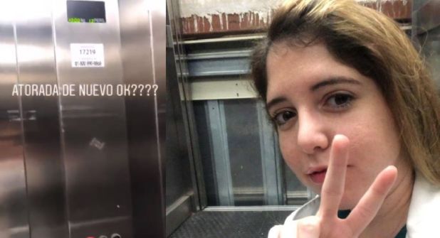 Por otro lado, la usuaria de la red social Twitter en donde aparece como @titacaardenas también cuenta con una fotrografía en donde se le puede apreciar aparentemente atorada en el elevador.