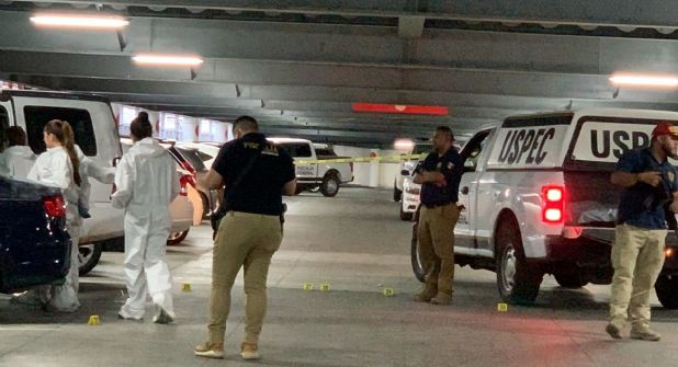 La primera ofensiva criminal ocurrió en el estacionamiento de la plaza comercial Espacio Las Américas, donde dos personas fueron asesinadas a tiros. Los informes refieren que sujetos armados se acercaron al vehículo de las víctimas y dispararon en su contra, antes de que abordaran su camioneta, estacionada en el segundo nivel.