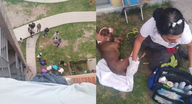 La URSVA recibió el reporte a las 16:30 horas y denunciaron que un perro había caído de un cuarto piso, por lo que empezó la movilización de las unidades de la unidad y llegaron al punto.