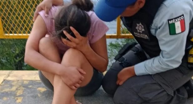 A través del C4, se recibió el reporte de una mujer que se encontraba en la parte alta del puente peatonal. Los oficiales Homero Puente y Lizy Aidé Treviño se acercaron al lugar y observaron a la mujer con intenciones de lanzarse al vacío.